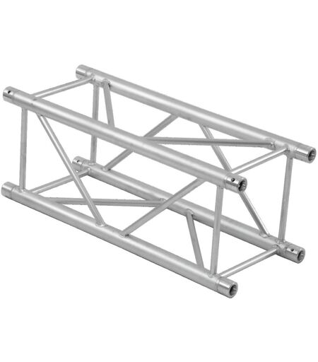 QUADLOCK TQ390 4-Punkt TraversensystemBeim QUADLOCK TQ390 handelt es sich um ein 4-Punkt Traversensystem aus Aluminium, das über vier konische Verbinder, Zapfen und Splinte verbunden wird.Der Vorteil konischer Verbinder liegt darin, dass sie kraft- und formschlüssig mit dem Gurtrohr abschließen und damit höchste Belastbarkeit garantieren. Das Quick-Lock System ermöglicht schnelle, effiziente und optisch ansprechende Montage bei häufigem Auf- und Abbau.Die vier Gurtrohre sind aus 50 mm Aluminiumrohr mit 2 mm Wandstärke gefertigt und geben diesem System ein hervorragendes Gewichts-Belastbarkeitsverhältnis. Die Streben haben einen Durchmesser von 20 mm bei 2 mm Wandstärke und bieten damit erhöhte Festigkeit und Belastbarkeit.Mit Außenmaßen von 390 mm handelt es sich um ein stabiles Traversensystem für höhere Lasten und längere Haltbarkeit. Dieses Traversensystem ist in erster Linie für die intensive Nutzung im Bühnenbau, Messebau, in der Veranstaltungstechnik, aber auch für permanente Installationen bei Diskotheken- und Theatereinrichtungen konzipiert.Durch sein höheres Außenmaß und die verstärkten Streben können auch größere Strukturen für Tourbühnen, Großdiskotheken etc. realisiert werden.Die Produktion dieses Traversensystems wird vom TÜV überwacht. Die Lasttabelle als Berechnungsgrundlage kann vor dem Kauf im Internet heruntergeladen werden!Bitte beachten Sie: Dieses Traversensystem darf niemals mit anderen Systemen kombiniert werden!4-Punkt Traversensystem Geringes Gewicht, Einfach aufzubauen, Gurtrohr: 50 mm, TÜV Süd zertifiziert, Für Anwendungsgebiete wie zum Beispiel: Theater, Messe- und Ladenbau, Clubs/Tanzschulen, Weiterführende Informationen zu diesem Produkt finden Sie unter "Downloads" im Datenblatt, Lieferumfang 1 x Verbinderset, Aufbau: Einfach aufzubauen, Gurtrohr: 50 mm x 2 mm, Schweißverfahren: WIG-Puls, Schweißmaterial: AlMg 5, Farbe: Alufarben, Maße: Länge: 300 cmBreite: 39 cmHöhe: 39 cm, Gewicht: 16,10 kg ...