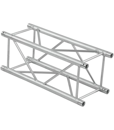 QUADLOCK TQ390 4-Punkt TraversensystemBeim QUADLOCK TQ390 handelt es sich um ein 4-Punkt Traversensystem aus Aluminium, das über vier konische Verbinder, Zapfen und Splinte verbunden wird.Der Vorteil konischer Verbinder liegt darin, dass sie kraft- und formschlüssig mit dem Gurtrohr abschließen und damit höchste Belastbarkeit garantieren. Das Quick-Lock System ermöglicht schnelle, effiziente und optisch ansprechende Montage bei häufigem Auf- und Abbau.Die vier Gurtrohre sind aus 50 mm Aluminiumrohr mit 2 mm Wandstärke gefertigt und geben diesem System ein hervorragendes Gewichts-Belastbarkeitsverhältnis. Die Streben haben einen Durchmesser von 20 mm bei 2 mm Wandstärke und bieten damit erhöhte Festigkeit und Belastbarkeit.Mit Außenmaßen von 390 mm handelt es sich um ein stabiles Traversensystem für höhere Lasten und längere Haltbarkeit. Dieses Traversensystem ist in erster Linie für die intensive Nutzung im Bühnenbau, Messebau, in der Veranstaltungstechnik, aber auch für permanente Installationen bei Diskotheken- und Theatereinrichtungen konzipiert.Durch sein höheres Außenmaß und die verstärkten Streben können auch größere Strukturen für Tourbühnen, Großdiskotheken etc. realisiert werden.Die Produktion dieses Traversensystems wird vom TÜV überwacht. Die Lasttabelle als Berechnungsgrundlage kann vor dem Kauf im Internet heruntergeladen werden!Bitte beachten Sie: Dieses Traversensystem darf niemals mit anderen Systemen kombiniert werden!4-Punkt Traversensystem Geringes Gewicht, Einfach aufzubauen, Gurtrohr: 50 mm, TÜV Süd zertifiziert, Für Anwendungsgebiete wie zum Beispiel: Theater, Messe- und Ladenbau, Clubs/Tanzschulen, Weiterführende Informationen zu diesem Produkt finden Sie unter "Downloads" im Datenblatt, Lieferumfang 1 x Verbinderset, Aufbau: Einfach aufzubauen, Gurtrohr: 50 mm x 2 mm, Schweißverfahren: WIG-Puls, Schweißmaterial: AlMg 5, Farbe: Alufarben, Maße: Länge: 200 cmBreite: 39 cmHöhe: 39 cm, Gewicht: 11,73 kg ...