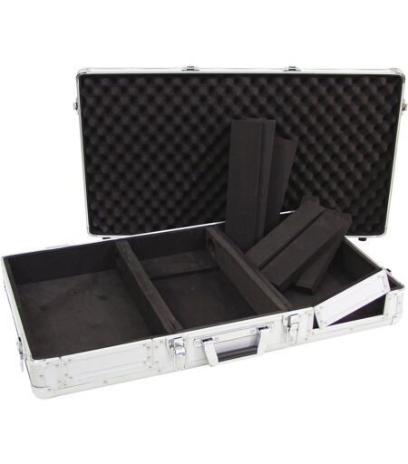 Koffer-Case Passend für zwei DJ-CD-Player und ein 254-mm-DJ-Mischpult, Abnehmbare Frontblende für CD-Player mit Fronteinschub, Vorbereitete Kabeldurchführungen, Hochwertige Verarbeitung mit Schichtholz mehrlagig verleimt 3 mm, silber, laminiert, Deckel mit Schaumstoffpolsterung, Innenraum mit Schaumstoffpolsterung, Abnehmbarer Deckel, Aluminiumprofilrahmen 25mm mit abgerundeten Ecken, Robuster Tragegriff, 4 hochwertige Schnappschlösser mit Absperrfunktion, Gummifüße, Weiterführende Informationen zu diesem Produkt finden Sie unter "Downloads" im Datenblatt, Maximale Last: 25 kg, Abnehmbare Deckel: 1 Stück, Aluminiumprofilrahmen: 25 mm, Tragegriff: 1 Stück, Verschluss: Schnappschloss: 4 Stück mit Absperrfunktion, Transporthilfe: Gummifüße, Material: Schichtholz mehrlagig verleimt, 3 mm, Farbe: Silber, laminiert, Fach mitte: 21 cm x 43 cm x 8 cm, Frontöffnungen: 18 cm x 6 cm, Fach außen: 25 cm x 43 cm x 8 cm, Innenmaße: 71 cm x 43 cm x 8 cm, Maße: Breite: 84 cmTiefe: 47 cmHöhe: 15,5 cm, Gewicht: 5,90 kg ...