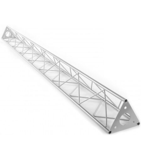 DECOTRUSS 3-Punkt Traversensystem: Bei DECOTRUSS handelt es sich um ein 3-Punkt Traversensystem aus Stahl, das über drei M10 Schrauben/Muttern verbunden wird. Der Vorteil dieser Schraubverbindung besteht darin, dass bei Verlust einzelner Verbinder schnell auf Baumarktware ausgewichen werden kann. Die drei Gurtrohre sind aus 15 mm Stahlrohr mit 1,5 mm Wandstärke gefertigt und eignen sich dadurch nur zu dekorativen Zwecken. Mit seinen minimalen Außenmaßen von 150 mm eignet sich DECOTRUSS ideal zum Gestalten von Design-Elementen im Dekorationsbereich von Privathäusern oder auf Messeständen, im Ladenbau, Diskotheken- und Theatereinrichtungen. Bei diesem Traversensystem handelt es sich um ein reines Dekorationssystem, das durch kompakte Maße, niedrigen Lageraufwand und einfachen Transport überzeugt. Bitte beachten Sie: Dieses Traversensystem darf niemals mit anderen Systemen kombiniert werden und es sind keine Verbinder im Lieferumfang enthalten!: Das dekorative Trussing: Leichte Montage, Die DECOTRUSS Elemente werden über die Verbindungsplatten mit drei M10 Schrauben verschraubt, Durch eine Vielzahl von Traversen und Ecken lassen sich phantasievolle Raumgebilde erstellen, DECOTRUSS eignet sich zum Gestalten von Design-Elementen im z. B. im Ladenbau, auf Messeständen, DECOTRUSS ist in silberner Lackierung erhältlich , DECOTRUSS Konstruktionen sind als Design-Element gedacht, Bitte beachten Sie die für Traversen-Konstruktionen geltenden gesetzlichen Richtlinien, Längsrohre:, 15 x 1,5 mm , Querverstrebungen:, 5 mm , Maße:, 2000 x 150 x 130 mm , Gewicht:, 4,55 kg ...