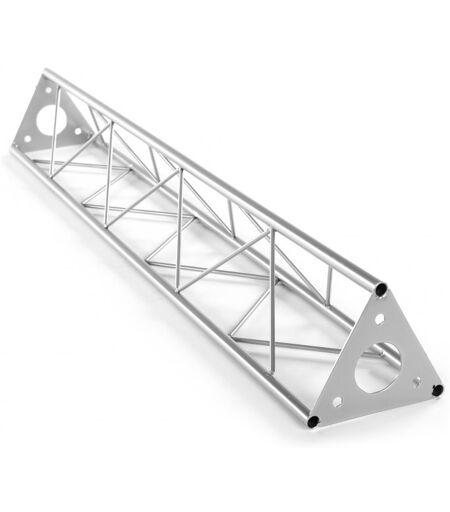 DECOTRUSS 3-Punkt Traversensystem: Bei DECOTRUSS handelt es sich um ein 3-Punkt Traversensystem aus Stahl, das über drei M10 Schrauben/Muttern verbunden wird. Der Vorteil dieser Schraubverbindung besteht darin, dass bei Verlust einzelner Verbinder schnell auf Baumarktware ausgewichen werden kann. Die drei Gurtrohre sind aus 15 mm Stahlrohr mit 1,5 mm Wandstärke gefertigt und eignen sich dadurch nur zu dekorativen Zwecken. Mit seinen minimalen Außenmaßen von 150 mm eignet sich DECOTRUSS ideal zum Gestalten von Design-Elementen im Dekorationsbereich von Privathäusern oder auf Messeständen, im Ladenbau, Diskotheken- und Theatereinrichtungen. Bei diesem Traversensystem handelt es sich um ein reines Dekorationssystem, das durch kompakte Maße, niedrigen Lageraufwand und einfachen Transport überzeugt. Bitte beachten Sie: Dieses Traversensystem darf niemals mit anderen Systemen kombiniert werden und es sind keine Verbinder im Lieferumfang enthalten!: Das dekorative Trussing: Leichte Montage, Die DECOTRUSS Elemente werden über die Verbindungsplatten mit drei M10 Schrauben verschraubt, Durch eine Vielzahl von Traversen und Ecken lassen sich phantasievolle Raumgebilde erstellen, DECOTRUSS eignet sich zum Gestalten von Design-Elementen im z. B. im Ladenbau, auf Messeständen, DECOTRUSS ist in silberner Lackierung erhältlich , DECOTRUSS Konstruktionen sind als Design-Element gedacht, Bitte beachten Sie die für Traversen-Konstruktionen geltenden gesetzlichen Richtlinien, Längsrohre:, 15 x 1,5 mm , Querverstrebungen:, 5 mm , Maße:, 1000 x 150 x 130 mm , Gewicht:, 2,30 kg ...