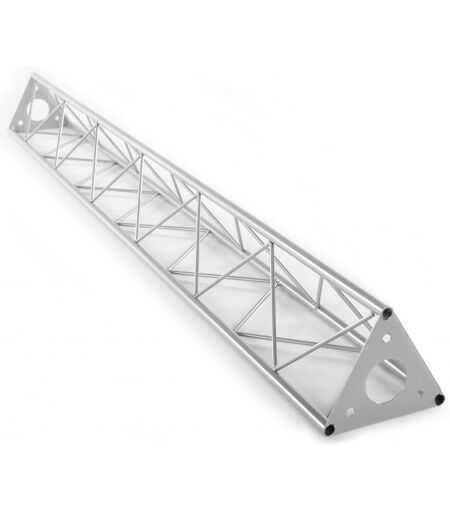 DECOTRUSS 3-Punkt Traversensystem: Bei DECOTRUSS handelt es sich um ein 3-Punkt Traversensystem aus Stahl, das über drei M10 Schrauben/Muttern verbunden wird. Der Vorteil dieser Schraubverbindung besteht darin, dass bei Verlust einzelner Verbinder schnell auf Baumarktware ausgewichen werden kann. Die drei Gurtrohre sind aus 15 mm Stahlrohr mit 1,5 mm Wandstärke gefertigt und eignen sich dadurch nur zu dekorativen Zwecken. Mit seinen minimalen Außenmaßen von 150 mm eignet sich DECOTRUSS ideal zum Gestalten von Design-Elementen im Dekorationsbereich von Privathäusern oder auf Messeständen, im Ladenbau, Diskotheken- und Theatereinrichtungen. Bei diesem Traversensystem handelt es sich um ein reines Dekorationssystem, das durch kompakte Maße, niedrigen Lageraufwand und einfachen Transport überzeugt. Bitte beachten Sie: Dieses Traversensystem darf niemals mit anderen Systemen kombiniert werden und es sind keine Verbinder im Lieferumfang enthalten!: Das dekorative Trussing: Leichte Montage, Die DECOTRUSS Elemente werden über die Verbindungsplatten mit drei M10 Schrauben verschraubt, Durch eine Vielzahl von Traversen und Ecken lassen sich phantasievolle Raumgebilde erstellen, DECOTRUSS eignet sich zum Gestalten von Design-Elementen im z. B. im Ladenbau, auf Messeständen, DECOTRUSS ist in silberner Lackierung erhältlich , DECOTRUSS Konstruktionen sind als Design-Element gedacht, Bitte beachten Sie die für Traversen-Konstruktionen geltenden gesetzlichen Richtlinien, Längsrohre:, 15 x 1,5 mm , Querverstrebungen:, 5 mm , Maße:, 1500 x 150 x 130 mm , Gewicht:, 3,40 kg ...