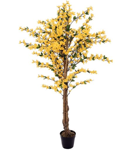 Blühender Forsythienbaum Naturstamm mit Lianen, Zweige formbar, Der Artikel wird fertig zum Hinstellen ausgeliefert, Mit ca. 192 naturgetreuen Blättern, gelbfarbenen formschönen Blüten, Stamm: 3 x Naturstamm mit Lianen, Aufbau: Zweige formbar, Aufstellung/Befestigung: Gärtnertopf, Blattwerk: Ca. 192 BlätterMaterial: Textil, Blüten: Farbe: gelb, Stil der Deko: Wald und Flur, Saison: Frühjahr, Maße: Höhe: 150 cm, Gewicht: 3,90 kg ...