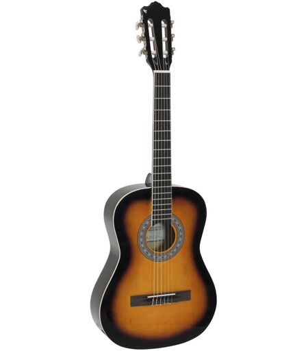 Klassische Gitarre 3/4 Für Anwendungsgebiete wie zum Beispiel: Geschenkideen, Lieferumfang 1 x Instrument, 1 x Tasche, 1 x Innensechskantschlüssel, Hals: OkoumeGriffbrett: Blackwood, Korpus: 3/4Linde, Mensur: 580 mm, Saitenanzahl: 6, Decke: Linde, Farbe: Sunburst, Gewicht: 1,65 kg ...