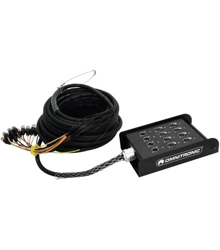 Komplett konfektionierter Verteiler Für Multiweg-Signalübermittlung zwischen Bühne und Mixer, Professionelle Verteilerbox mit 12 Signalwegen (8 Eingänge und 4 Ausgänge/Returns), 3-pol. XLR-Verbinder, Hochflexibles 30 m Multicore-Kabel mit Farbkennzeichnung, aufgespleißt in 8 Stecker und 4 Kupplungen, Alle Signalwege symmetrisch mit 2 Adern und paarweiser Abschirmung, Lieferumfang 1 x Gerät, 2 x Tasche, Aufbau Kabel: Multicore-Kabel, Kabellänge: 30 m, Anschluss A: 8 x 3-pol XLR (W), Anschluss B: 4 x 3-pol XLR (M), Farbe: Schwarz, Maße: Breite: 33 cmTiefe: 19 cmHöhe: 8,5 cm, Gewicht: 10,40 kg ...