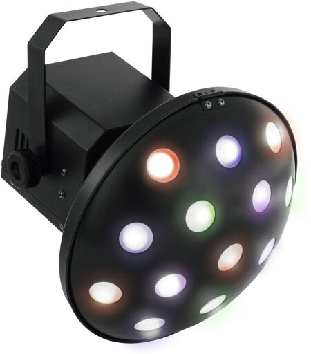 Beeindruckende Lightshow in 6 grandiosen FarbenDer Mushroom-Strahleneffekt LED Z-1000 von Eurolite bietet mit seinen 6 verschiedenen 3-Watt-LEDs messerscharfe, bunte Strahlen in Rot, Grün, Blau, Amber, Weiß und Pink, die in verschiedenen Modi wiedergegeben werden können: Sie können entweder zwischen 9 internen Showprogrammen wählen, über das integrierte Mikrofon die Musik den Rhythmus vorgeben lassen oder einen DMX-Controller anschließen (das Gerät belegt 10 DMX-Kanäle). Sofort überall einsatzbereitGeliefert wird der LED Z-1000 anschlussfertig über Netzleitung mit Schutzkontaktstecker. Bei einem Verbrauch von nur 23 W und einem Gewicht von rund 2 kg ist der LED Z-1000 ein abwechslungsreicher, preisgünstiger Strahleneffekt, der ideal für mobile DJs, Clubs, Bars und Partyräume jeder Art geeignet ist.Mushroom mit DMX und Strahlen in den Farben in R, G, B, A, W und P Mushroom mit rotierenden Strahlen in unterschiedlichen Farbkombinationen, 6 leistungsstarke LEDs 3 W high-power R/G/B/W/A/P, Strahlen-Effekt, Stroboskop-Effekt, Integrierte Showprogramme, Ansteuerbar über Stand-alone, DMX, Musiksteuerung über Mikrofon, Bereits vorprogrammiert bei Light´J, LED PC-Control 512, EASY SHOW 1, Light Captain, EASY SHOW 2, Colorchief, Mit einem Abstrahlwinkel von 115°, Mit Montagebügel, Für Anwendungsgebiete wie zum Beispiel: Clubs/Tanzschulen, Partykeller, Kleinverleih, Einsatzmöglichkeit: Fliegend, auf Stativ, Lieferumfang 1 x Lichteffekt, 1 x Montagebügel, 1 x Bedienungsanleitung, 1 x Netzkabel/Stromkabel, Stromversorgung: 100-240 V AC, 50/60 Hz, Gesamtanschlusswert: 23 W, Schutzart: IP20, Stromanschluss: Festes Stromanschlusskabel mit Schutzkontaktstecker, Gerätesicherung: 5 x 20 mm, F 1 A Sicherung auswechselbar, Lampenart: LED-Lampe, LED-Typ: 6 x 3 W high-power R/G/B/W/A/P, DMX-Kanäle: 10, DMX-Eingang: 3-pol XLR (M) Einbauversion, DMX-Ausgang: 3-pol XLR (W) Einbauversion, Ansteuerung: Stand-alone, DMX, Musiksteuerung über Mikrofon, Vorprogrammiert bei: Light´J, LED PC-Control 512, EASY SHOW 1, Light Captain, EASY SHOW 2, Colorchief, Abstrahlwinkel: 115°, Abstrahlwinkel (1/2 Peak): 115°, Gehäusefarbe: Schwarz, Aufnahmesystem: Montagebügel, Maße: Breite: 27,5 cmTiefe: 31 cmHöhe: 28 cm, Gewicht: 2,20 kg, Geräuschklassifizierung: Klasse 2 (leichte Geräusche), Rechtliche Spezifikationen, Spezialprodukt: Nicht zur Raumbeleuchtung in Haushalten vorgesehen, Verwendungszweck: Beleuchtung für Show-Effekte ...