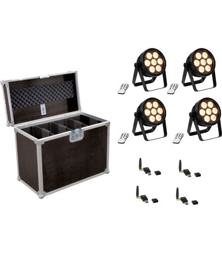 EuroLite Set 4x Led 7c-7 Silent Slim Spot + Usb Quickdmx + Case