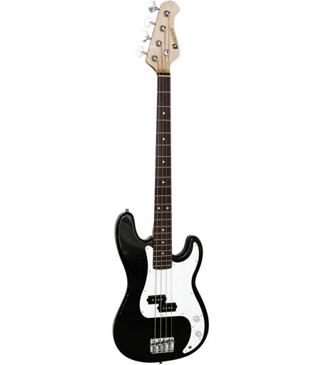 E-Bass Lieferumfang 1 x Instrument, 1 x Klinke Kabel, 2 x Innensechskantschlüssel, Tonabnehmer: 1 x Split Single Coil, Ausführung: Rechtshänderversion, Hals: Geschraubter Hals aus AhornGriffbrett: Blackwood 21 Bünde, Korpus: 4/4 JB-FormLinde lackiert, Schlagbrett: Weiß, Mensur: 864 mm, Sattelbreite: 43 mm, Saitenanzahl: 4, Regler: 1 x Lautstärke, 1 x Ton, Brücke: JB-style, Hardware: Verchromt, Farbe: Schwarz, hochglänzend, lackiert, Gewicht: 4,15 kg ...
