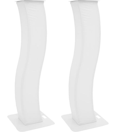Set mit 2 Ständern für Lautsprecher und Lichteffektgeräte Lichtdurchlässiges Stretchgewebe - ideal zum Hinterleuchten mit zusätzlichen Lichteffekten, Zapfen (Ø 35 mm) für die Befestigung von Lautsprecherboxen, Schnelle Montage ohne Werkzeug, Weiß lackierte Stahlrohrkonstruktion in geschwungener Ausführung, Gewicht je Ständer 11,8 kg, Waschbar (nach dem Waschen muss der Stoff erneut mit flammhemmendem Mittel behandelt werden), Für Anwendungsgebiete wie zum Beispiel: Messe- und Ladenbau, Hochzeit/Gala/Events, Lieferumfang 2 x Tasche, 1 x Ständer, 1 x Platte, EUROLITE Teil 2 Stage Stand geschwungen (Tasche, Truss, Cover) B1 schwer entflammbar, Lieferumfang 4 x Gestell, 2 x Textilcover, 1 x Tasche, Maximale Last: 20 kg, Maße: Breite: 50 cmTiefe: 50 cmHöhe: 150 cm, Gewicht: 26,21 kg, EUROLITE Teil 1 Stage Stand geschwungen (Platten + Tasche), Material: Stahl (pulverbeschichtet), Farbe: Weiß, Gewicht: 15,41 kg, EUROLITE Teil 2 Stage Stand geschwungen (Tasche, Truss, Cover), Material: Stahl (pulverbeschichtet), Textil, Farbe: Weiß, Maße: Höhe: 150 cm, Gewicht: 10,80 kg ...