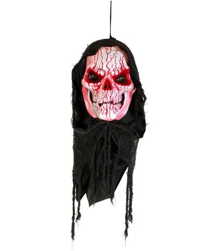 Der Blut-Totenkopf von Europalms ist die ideale Ergänzung Ihrer Halloween- oder Motto-Dekoration.Unter einer zerfetzten schwarzen Kapuze lauert ein markanter, mit blutroten Adern durchzogener Totenkopf, gespannt auf die eintreffenden Besucher. Der "Blut-Effekt" wird durch eine blinkende, rote LED im Inneren des Skelettschädels verstärkt. Gleichzeitig ertönt eine schaurige Stimme und Geisterbahnsound.Die Animation wird über einen Bewegungsmelder (Lichtsensor am Mund) oder eine kabelgebundene, manuelle Steuerung aktiviert.Totenschädel zum Hängen mit Licht- und Soundeffekt Akku-/Batteriebetrieb möglich, Kopf rot blinkend, Soundeffekt, Animationsdauer bis zu 30 Sekunden, Lieferumfang 1 x Figur, 1 x Bedienungsanleitung, Stromversorgung: 4,5V DC, Schutzart: IP20, Stromanschluss: Batterie/Akku, Batterie: 3 x Mignon (AA) (nicht im Lieferumfang), Effekt: Kopf rot blinkend, SoundeffektÜber Bewegungssensor oder TasterDauer bis zu 30s, Aufstellung/Befestigung: Schlaufe (Seil), Saison: Halloween, Maße: Breite: 30 cmTiefe: 13 cmHöhe: 80 cm, Gewicht: 0,22 kg ...