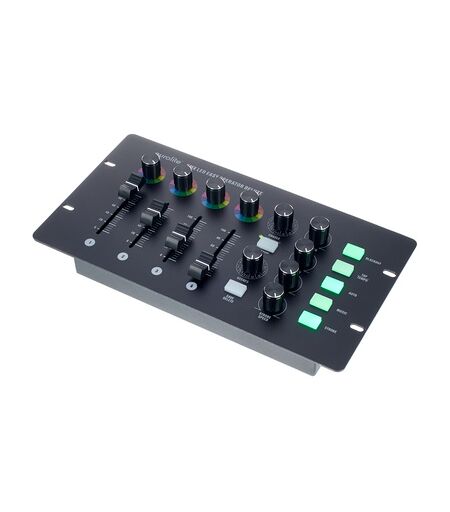 Eurolite DMX LED EASY Operator Deluxe, DMX LED EASY Operator Deluxe, Controller zur Ansteuerung von gängigen LED-Scheinwerfern, 4 LED-Scheinwerfer oder 1 KLS-Anlage mit 4 Segmenten steuerbar, DMX-Kanäle für Rot, Grün, Blau, Amber, Weiß, UV, Strobe und Master, 9 verschiedene Modi für die Reihenfolge der DMX-Kanäle wählbar, 12 integrierte Preset-Programme und 12 benutzerdefinierbare Programme (jeweils bis zu 12 Szenen), Automatikbetrieb oder Musiksteuerung, 4 Farbregler mit jeweils 12 Farben, 4 Helligkeitsregler, Regler für Gesamthelligkeit, Ablauf- und Überblendgeschwindigkeit, und Stroboskop-Effekt, Funktionstasten für Blackout, TAP/Tempo, Auto, Music und Strobe, Kompaktes Tischpultgehäuse, Spannungsversorgung: 100-240 V AC, 50/60 Hz, über mitgeliefertes Netzteil (9 V/300 mA), Musiksteuerung: über eingebautes Mikrofon oder Cinch-Buchse, DMX512-Ausgang: 3-pol XLR-Einbaukupplung, Maße (L x B x H): 260 x 140 x 65 mm, Schutzart: IP20, Gewicht: 1,2 kg, Gesamtanschlusswert: 10 W, Anzahl DMX-Kanäle: 24 ...