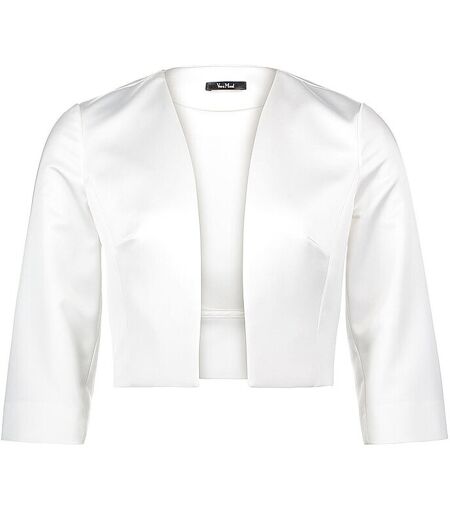 Eleganter Damen Bolero Aus glänzendem Taft Offen zu tragen Leicht tailliert 3/4-Arm Gesamtlänge: 40 cm Unifarben Farbbezeichnung: Offwhite Material: 97% Polyester, 3% Elasthan Futter: 100% Acetat ...