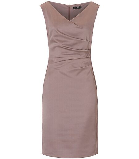 Cocktailkleid aus glänzendem Satin Farbe: Smoky Taupe Passform: Figurbetont Gesamtlänge: 100 cm Länge ab Taille: 58 cm Feinmaterial: Satin Ärmel: Ärmellos Ausschnitt: V-Ausschnitt Längeninfo: Knieumspielend Verschluss: Reißverschluss Material: 97% Polyester 3% Elasthan Futter: 100% Polyester ...