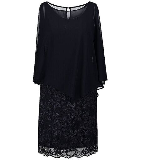 Figurumschmeichelndes Cocktailkleid mit SpitzeFarbe: Night Sky BlueKnopf dient zum Verschluss RundhalsausschnittFledermausärmelFigurbetonte PassformMidilängeMaterial: 95% Polyester, 5% ElasthanFutter: 100% Polyester ...