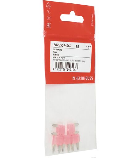 HERTH+BUSS ELPARTS Sicherung Spannung bis [V]:32 V Stromstärke [A]:4 A Tiefe [mm]:3,8 mm Gebindeart:Blisterpack DIN/ISO:JASO D612 DIN/ISO:72581/3F Höhe [mm]:16,3 mm Breite [mm]:10,9 mm DIN/ISO:8820-3 DIN/ISO:SAE J2077 Farbe:rosa Oberfläche:versilbert Sicherungsausführung:Mini-Flachstecksicherung Menge 5 , OE-Nummer:HELLA:8JS 728 596-801HERTH+BUSS ELPARTS:50295574HERTH+BUSS ELPARTS:50295574/66 ...
