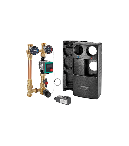 Oventrop Regumat Kessel-Anbindesystem 1354276zur Konstanthaltung der Vorlauftemperatur bei Fußboden- und Wandheizungmit universellermodular aufgebauter Wärmedämmungbestehend aus Absperreinrichtung mit 2 Kugelhähnen und 2 Thermometern (ohne Überströmvorrichtung) und Anschluss für TauchfühlerTemperaturregler mit TauchfühlerFlanschrohr mit SperrventilDreiwege-Mischventilelektronischer TemperaturreglerHocheffizienzpumpe (Grauguss)Pumpenkugelhahn und Wärmedämmung ...