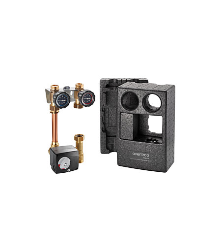Oventrop Regumat Kessel-Anbindesystem 1355251mit universellermodular aufgebauter Wärmedämmungbestehend aus Absperreinrichtung mit 2 Kugelhähnen2 Thermometern und WandhalterungDreiwegemischer mit SperrventilStellmotor und Wärmedämmung ...