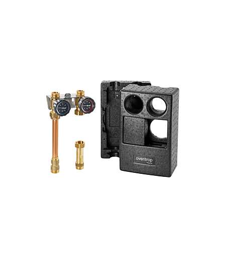 Oventrop Regumat Kessel-Anbindesystem 1355051mit universellermodular aufgebauter Wärmedämmungbestehend aus Absperreinrichtung mit 2 Kugelhähnen2 Thermometern und WandhalterungFlanschrohr mit SperrventilDistanzstück und Wärmedämmung ...