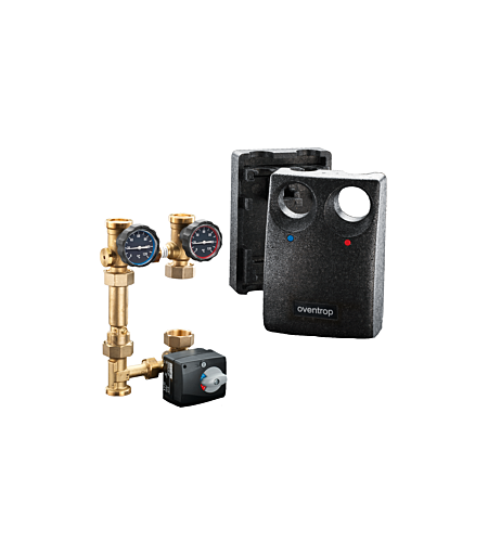 Oventrop Regumat Kessel-Anbindesystem 1355271mit Dreiwegemischermit manuell voreinstellbarem Bypass und Stellmotorbestehend aus Absperreinrichtung mit 2 Kugelhähnen und 2 Thermometer (ohne Überströmvorrichtung)Flanschrohr mit SperrventilDreiwegemischer mit Stellmotor und Wärmedämmung ...