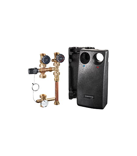 Oventrop Regumat Kessel-Anbindesystem 1354692mit integriertem Dreiwege-Mischventilmit Temperaturregler zur Rücklauftemperaturanhebungbestehend aus HocheffizienzpumpeKugelhahn mit ThermometerDreiwegemischventilTemperaturregler mit Tauchfühler Einstellbereich 40-70 °CFlanschrohr mit SperrventilAnschlussgehäuse für Tauchfühler mit Thermometer und Wärmedämmung ...