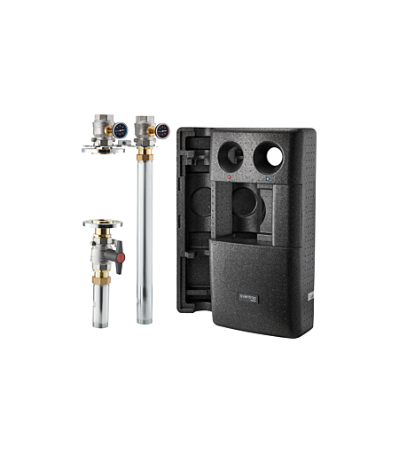 Oventrop Regumat Kessel-Anbindesystem 1358552mit universellermodular aufgebauter Wärmedämmungbestehend aus Vorlauf-Absperrkugelhahn mit Thermometer und Entleerungs-/SpülventilRücklauf-Absperrkugelhahn mit integriertem SperrventilThermometer und Entleerung-/SpülventilHalterungPumpenkugelhahn mit Entleerungs-/SpülventilDistanzstückRücklaufrohrWärmedämmung ...