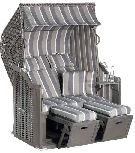 Artikelnummer: 80549 Sunny Smart Rustikal 250 Plus Strandkorb – Ihr exklusiver Rückzugsort für entspannte Stunden im Garten . Holen Sie sich das echte Urlaubsfeeling nach Hause – mit dem Sunny Smart Rustikal 250 Plus Strandkorb. Dieses elegante Modell in klassischer Ostseeform überzeugt durch seine hochwertige Verarbeitung, den maximalen Sitzkomfort und ein stilvolles Design. Perfekt für alle, die sich im eigenen Garten, auf der Terrasse oder dem Balkon eine luxuriöse Ruheoase schaffen möchten. Der 2-Sitzer Strandkorb ist aus robustem Kunststoffgeflecht und massivem Fichtenholz gefertigt, das in einem eleganten anthrazit/grau lasierten Finish erstrahlt. Dank seiner langlebigen Materialien und wetterfesten Eigenschaften ist dieses Modell ideal für den ganzjährigen Einsatz im Freien geeignet. Exklusiver Sitzkomfort für zwei Personen . Der Rustikal 250 Plus bietet höchsten Komfort durch seine bequeme Polsterung aus Strukturpolyester. Die dicken Sitzpolster und die ergonomisch geformten Rückenpolster sorgen für ein angenehmes Sitzerlebnis. Die höhenverstellbaren Fußstützen mit geteilten Fußkissen ermöglichen eine individuelle Anpassung und machen das Entspannen noch angenehmer. Zusätzlichen Luxus bieten die beiden Nackenkissen und Kuschelkissen, die für eine optimale Unterstützung von Kopf und Nacken sorgen. Lehnen Sie sich zurück, schließen Sie die Augen und genießen Sie pure Erholung. Durch die mehrfach verstellbare Rückenlehne können Sie jederzeit zwischen aufrechter Sitzhaltung und einer angenehmen Halbliegeposition wechseln. Praktische Ausstattung für maximalen Komfort . Dieser Strandkorb wurde bis ins kleinste Detail durchdacht, um höchsten Komfort zu bieten. Die zwei klappbaren Seitentische bieten ausreichend Platz für Getränke, Snacks oder ein gutes Buch. Die integrierten Oberkorbhaltegriffe ermöglichen eine einfache Handhabung und das Verschieben des Strandkorbs. Die stabilen Fußstützen mit stilvollem Zierrahmen ergänzen das komfortable Design perfekt. Der Oberkorb ist mehrfach verstellbar, sodass Sie jederzeit die ideale Sitz- oder Liegeposition einnehmen können. Dank der hochwertigen Materialien und der durchdachten Konstruktion genießen Sie in diesem Strandkorb höchsten Sitzkomfort bei maximaler Langlebigkeit. Wetterfest, pflegeleicht & langlebig . Dieser Strandkorb ist nicht nur optisch ein Highlight, sondern auch besonders pflegeleicht und widerstandsfähig gegenüber Wettereinflüssen. Das robuste PVC-Kunststoffgeflecht und das lasierte Fichtenholz schützen zuverlässig vor Feuchtigkeit und UV-Strahlen, während die wetterfest verzinkten Metallteile für zusätzliche Stabilität sorgen. So bleibt Ihr neuer Lieblingsplatz auch bei Wind und Wetter in Top-Zustand. Jetzt bestellen & entspannen! . Der Sunny Smart Rustikal 250 Plus Strandkorb ist die perfekte Wahl für alle, die Komfort und Stil in ihrem Garten genießen möchten. Bestellen Sie jetzt und verwandeln Sie Ihre Außenbereiche in eine Wohlfühloase, in der Sie sich jederzeit entspannen und... ...