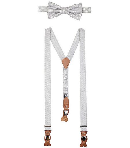 Hosenträger und Fliege im Set Serie: Prince Bowtie Elastisches Material - längenverstellbar Details in Lederoptik Inkl 6 Knopf-Clips Farbbezeichnung: Silber Perfekt für festliche Anlässe ...