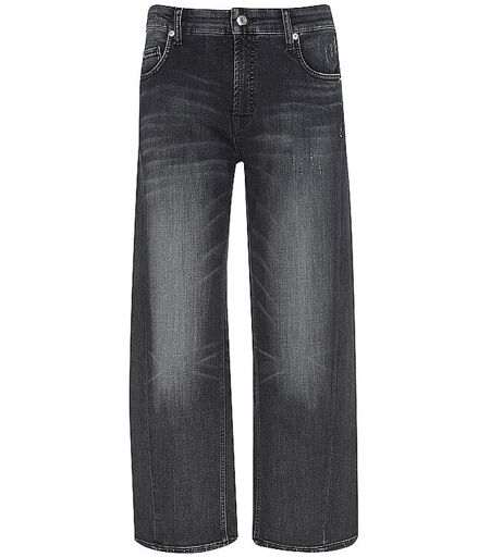 Damen Jeans aus Denim Klassischer Hosenverschluss Mittlere Leibhöhe 5-Pocket-Style Print auf der Rückseite Gewaschene Optik Weites Bein Farbbezeichnung: Fancy Black Used Material: 57% Baumwolle 37% Modal 4% Elastomultiester 2% Elasthan ...