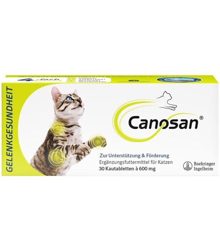 Anwendungsgebiet von Canosan Kautabletten für Katzen zur Unterstützung der GelenkeCanosan Kautabletten für Katzen zur Unterstützung der Gelenke ist ein Ergänzungsfuttermittel für die Gelenkgesundheit bei Katzen. Canosan® mit original Gonex® Grünlippmuschel-ExtraktDer Extrakt aus der Neuseeländischen Grünlippmuschel kann nicht nur uns Menschen, sondern auch unseren Vierbeinern das „Gelenkleben“ leichter machen. Aufgrund wertvoller Inhaltsstoffe wird Grünlippmuschel-Extrakt in der Tiergesundheit meist in Form von Ergänzungsfuttermitteln verabreicht. Gonex® macht den UnterschiedDie besonderen Eigenschaften von Canosan® beruhen auf seinem Inhaltsstoff Gonex® mit aktivem Grünlippmuschel-Extrakt. Die Aktivität bzw. Qualität des Extraktes wird durch einen besonderen, standardisierten Produktionsprozess von der Ernte bis zur Abfüllung gewährleistet: Ernte: Für Canosan® mit Gonex® werden nur kontrolliert angebaute Zuchtmuscheln zum Zeitpunkt maximaler Nährstoffkonzentration geerntet. Extrakt-Gewinnung: Die Muscheln werden ohne Hitzeeinwirkung geöffnet. Aus 100 % reinem Muschelfleisch wird der Extrakt für Gonex® gewonnen. Weiterverarbeitung: Der Gonex®-Muschelextrakt wird im schonenden Kaltpressverfahren weiterverarbeitet, da Hitzeeinwirkung die wertvollen Nährstoffe gefährden würde. DIE HÄUFIGSTEN FRAGEN UND ANTWORTEN RUND UM CANOSAN® 1. Wie lange kann Canosan® gegeben werden?Sie können Ihrer Katze Canosan® langfristig und ein Katzenlebenlang verabreichen. Es ist sehr gut verträglich. Die Canosan® Kautabletten sind 100% natürlich und hypoallergen. Sie enthalten unter anderem Gonex®, Hefe und Lupinenproteinmehl. 2. Gibt es Canosan® auch für Hunde?Canosan® ist ein natürliches Ergänzungsfuttermittel für beide Tierarten, Katzen und Hunde, das mit großem Forschungsaufwand speziell für die Regulierung und Stabilisierung für deren Bindegewebsstrukturen entwickelt wurde. Canosan® f ...