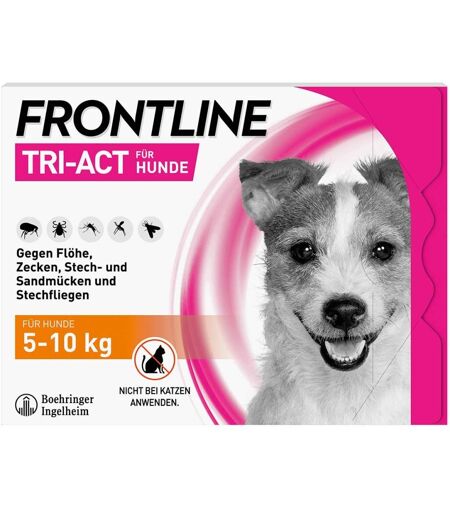 Anwendungsgebiet von FRONTLINE TRI-ACT® für Hunde 5-10 kgFRONTLINE TRI-ACT® für Hunde 5-10 kg. FRONTLINE TRI-ACT - der moderne Parasitenschutz für Hunde. Die Neuheit von der Nr. 1 gegen Zecken und Flöhe*. Das neue FRONTLINE TRI-ACT schützt Hunde zuverlässig vor Zecken, Flöhen und fliegenden Insekten wie Stechmücken und Stechfliegen. Als Lösung zum Auftragen auf die Haut (sogenanntes „Spot On“) wirkt FRONTLINE TRI-ACT zuverlässig bis zu einem Monat lang gegen Parasiten und kann auch bei Hundewelpen ab 8 Wochen und 2kg Körpergewicht angewendet werden. FRONTLINE TRI-ACT: Wehrt Zecken, Flöhe und fliegende Insekten effektiv ab Schützt bereits, bevor Zecke, Floh oder Stechmücke zustechen können Ist wasserfest Verhindert einen Neubefall von Parasiten FRONTLINE TRI-ACT reduziert das Risiko durch Parasiten übertragbarer Krankheiten wie beispielsweise Leishmaniose, Ehrlichiose und Babesiose. *Nr.1 in der Apotheke / FRONTLINE Gesamtmarke IQVIA Ecto Pharma Report YTD 10/2020. Die häufigsten Fragen rund um FRONTLINE TRI-ACT: 1. Wie wirkt FRONTLINE TRI-ACT genau? FRONTLINE TRI-ACT besteht aus einer Wirkstoffkombination, die Zecken, Flöhe und auch fliegende Insekten wie Stechmücken erfolgreich abwehrt und gleichzeitig unschädlich macht. So sorgt FRONTLINE TRI-ACT dafür, dass die Parasiten nicht zustechen, sondern auch für andere Tiere keine Gefahr mehr darstellen. An zwei Stellen im Nacken des Hundes aufgetragen verteilt es sich wie ein natürlicher Schutzfilm über die Haut und senkt so das Risiko gefährlicher, durch Parasiten übertragener Krankheiten wie Leishmaniose. 2. Wie oft muss ich FRONTLINE TRI-ACT verwenden? FRONTLINE TRI-ACT sollte monatlich angewendet werden, um einen lückenlosen Schutz zu gewährleisten. Bedingt durch unsere milderen Winter sind Zecken und Flöhe mittlerweile ganzjährig aktiv und Parasitenarten aus dem ...