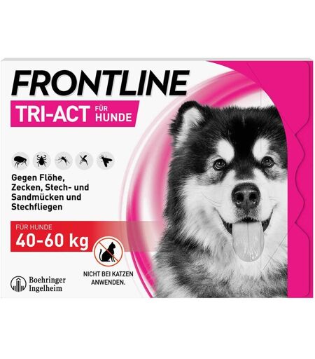 Anwendungsgebiet von FRONTLINE TRI-ACT® für Hunde 40-60 kgFRONTLINE TRI-ACT® für Hunde 40-60 kg. FRONTLINE TRI-ACT - der moderne Parasitenschutz für Hunde. Die Neuheit von der Nr. 1 gegen Zecken und Flöhe*. Neue Parasiten aus dem Süden wie Sandmücke und Tigermücke und auch Zecken, Flöhe und fliegende Insekten, die mittlerweile ganzjährig aktiv erfordern für unsere Vierbeiner einen modernen Parasitenschutz, der sich an die Begebenheiten von heute anpasst. Das neue FRONTLINE TRI-ACT schützt Hunde zuverlässig vor Zecken, Flöhen und fliegenden Insekten wie Stechmücken und Stechfliegen. Als Lösung zum Auftragen auf die Haut (sogenanntes „Spot On“) wirkt FRONTLINE TRI-ACT zuverlässig bis zu einem Monat lang gegen Parasiten und kann auch bei Hundewelpen ab 8 Wochen und 2kg Körpergewicht angewendet werden. Und: Auch ein Schutz gegen neue Parasitenarten wie Sandmücke und Tigermücke besteht. FRONTLINE TRI-ACT: Wehrt Zecken, Flöhe und fliegende Insekten wirksam ab Schützt bereits, bevor die Parasiten zustechen können Ist wasserfest Verhindert einen Neubefall von Parasiten FRONTLINE TRI-ACT reduziert zudem das Risiko durch Parasiten übertragbarer Krankheiten wie Leishmaniose, Ehrlichiose und Babesiose. *Nr.1 in der Apotheke / FRONTLINE Gesamtmarke IQVIA Ecto Pharma Report YTD 10/2020. Wirkungsweise von FRONTLINE TRI-ACT® für Hunde 40-60 kgDie Wirkweise von FRONTLINE TRI-ACT: Nach dem Auftragen verteilt sich FRONTLINE TRI-ACT in ein bis zwei Tagen mit dem natürlichen Talgfilm der Haut über die gesamte Körperoberfläche des Hundes und wirkt wie ein äußerer, unsichtbarer Schutzmantel gegen Parasiten. Dabei werden Zecken, Flöhe und fliegende Insekten wie Stechmücken und Stechfliegen vor dem Stich abgewehrt. Auch ein Schutz gegen die meist im Süden verbreitete, aber mehr und mehr auch in Deutschland beobachtete Tigermücke besteht. ...