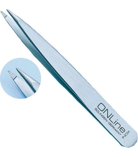 Für Splitter und tiefsitzende, eingewachsene Haare. Länge ca. 9,5 cm. Die klaren Vorzüge der ONLine Pinzette sind der saubere Schliff der Spitzen, scharfkantige, präzise Greifflächen und ergonomisch gestaltete, stabile Griffe. Sie sind aus 100% Edelstahl satiniert und rostfrei. Gerade da, wo es auf Präzision ankommt, beim Entfernen von Splittern, beim Zupfen, Greifen und Hantieren von kleinsten Objekten, zeigt sich der wahre Wert einer Pinzette. ...