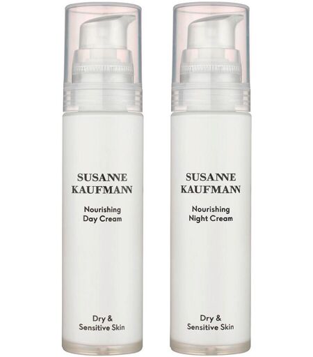 Das Susanne Kaufmann Day & Night Duo enthält: 1 x Susanne Kaufmann Tagescreme Linie T - Nourishing Day Cream, 50 ml1 x Susanne Kaufmann Regenerationscreme Linie T - Nourishing Night Cream, 50 ml Susanne Kaufmann Tagescreme Linie T - Nourishing Day Cream: Die Tagescreme Linie T ist die ideale feuchtigkeitsspendende und beruhigende Pflege für trockene und sensible Haut. Wie alle Produkte der Linie T enthält sie einen fein abgestimmten Kräuterkomplex aus Kamille, Salbei, Malve und Johanniskrautblüten. Diese Pflanzenessenzen sind bekannt für ihre entspannende, beruhigende und regenerierende Wirkung. Der hohe Wirkstoffanteil erzeugt eine leichte, aber nährstoffreiche Pflege. Als Trägerstoff dient feinstes Hagebuttenkernöl. Dieses energiereiche Öl wird dankbar von der Haut aufgenommen, es glättet, vitalisiert und wirkt der Fältchenbildung entgegen. Sein vitaminreicher, wohltuender Effekt ist sofort spürbar. Die Creme bietet eine ideale Make-up-Grundlage. Susanne Kaufmann Regenerationscreme Linie T - Nourishing Night Cream: Die Regenerationscreme Linie T bietet eine starke Tiefenwirkung während der nächtlichen Ruhephasen. Die Haut wird genährt und revitalisiert. Wie alle Produkte der Linie T enthält sie einen fein abgestimmten Kräuterkomplex aus Kamille, Salbei, Malve und Johanniskrautblüten. Diese Pflanzenessenzen sind bekannt für ihre entspannende, beruhigende und regenerierende Wirkung. Der Wirkstoffanteil ist besonders hoch. Als Trägerstoff dient feinstes Hagebuttenkernöl. Dieses energiereiche Öl wird dankbar von der Haut aufgenommen - es glättet, vitalisiert und wirkt der Fältchenbildung entgegen. Sein vitaminreicher, wohltuender Effekt ist sofort spürbar. Die Creme gibt der Haut die über den Tag verlorengegangenen, Stoffe zurück. ...