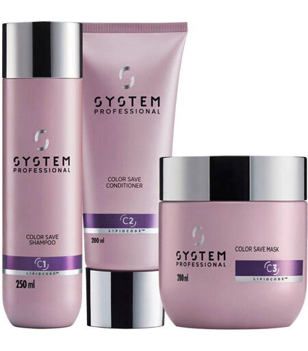 Color Save - Entwickelt, um coloriertes Haar zu reparieren und aufzubauen – für langanhaltende Brillanz. System Professional EnergyCode Color Save C1 Shampoo, 200 ml:Brillanter Farbschutz. Das Shampoo verlängert die Leuchtkraft der Farbe und schützt zusätzlich die Keratinstruktur des Haares durch die Reduktion der freien Radikalen im Leitungswasser. Verhindert Verblassen und Farbverschiebung und hält die Farbe länger frisch. Reinigung ohne Farbverlust. Anwendung: Gleichmäßig ins feuchte Haar einarbeiten. Die Shampoo Relax Haarwäsche anwenden. Sorgfältig ausspülen. System Professional EnergyCode Color Save C2 Conditioner, 200 ml:Die tägliche Express-Creme glättet und pflegt die Haarfasern. Der Fibrachrome Complex schützt aktiv die Farbbrillanz des Haares. Tägliche Anwendungen beugt Verblassen und Farbverschiebung vor und erhält die Frische colorierter Haare. Anwendung: Tragen Sie nach dem Waschen mit einem passenden System Professional Shampoo 1 bis 2 haselnussgroße Mengen des Conditioners auf das handtuchtrockene Haar auf. Nach 30 Sekunden Einwirkungszeit mit Wasser emulgieren lassen. Anschließend sorgfältig ausspülen. System Professional EnergyCode Color Save C3 Mask, 200 ml:Farbe, die länger hält, Geschmeidigkeit und gute Kämmbarkeit. Die Maske nährt coloriertes Haar intensiv und schützt die Haarfasern vor weiterer Schädigung. Der Aktivkomplex reduziert Verblassen sowie Farbverschiebung und sichert langanhaltene Farbfrische. Mit EnergyCode™ Complex für lebendiges und reaktionsfähiges Haar und Kopfhaut voller Energie. Anwendung: Nach dem Waschen 25 g der Maske direkt auf das Haar auftragen. Sparen Sie die Kopfhaut aus. Falls mit einer Infusion verwendet, die Substanzen mischen und auf das Haar auftragen. Mit Wasser aufemulgieren, sorgfältig ausspülen. Mit einer der System Professional Massage-Techniken sanft einmassieren und 5 Minuten einwirken lassen. Climazon oder HairSpa können den Pflegeeffekt intensivieren. ...