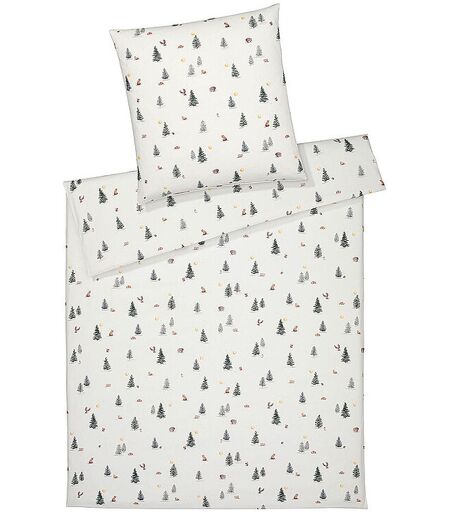 Elegante Flanell Bettwäsche Winterwald 70x90cm/140x200cm Weiss Weiss 26019a