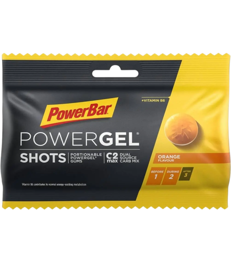 Warum Energie nicht auch mal individuell portionieren. Mit den PowerBar® PowerGel® Shots bekommst du Abwechslung zu klassischen Kohlenhydratriegeln und Gels. Wie auch die PowerGele® enthalten sie C2MAX, eine wissenschaftlich entwickelte Kombination aus Kohlenhydraten mit einem 2:1 Verhältnis von Glukose- und Fruktosequellen. Die Shots im praktischen wiederverschließbaren Beutel lassen sich nicht nur leicht und individuell portionieren, sondern passen auch in jede Trikottasche oder in den Rucksack. Genieße den einzigartigen Geschmack und sei bereit für jede Herausforderung. Praktisch zu portionierende Kohlenhydratgummis mit C2MAX Dual Source Carb Mix 5 Shots liefern ca. dieselbe Menge an Kohlenhydraten wie 1 herkömmliches PowerGel® Einzigartiger Geschmack mit flüssiger Gelfüllung Mit natürlichen Aromen Ohne Konservierungsstoffe (lt. Gesetz) Geschmacksrichtungen Orange und Raspberry: mit Vitamin B6 – Vitamin B6 trägt zu einem normalen Energiestoffwechsel bei Geschmack Cola: mit 75 mg Koffein pro Beutel – Koffein hilft, die Konzentration zu verbessern Alle PowerBar Produkte sind zusätzlich auf der Kölner Liste® aufgeführt, dadurch bieten wir den Athleten noch mehr Sicherheit und Vertrauen. VERZEHREMPFEHLUNG Orange und Raspberry: 2 Beutel/ Tag. Cola: 1 Beutel/ Tag. Cola Geschmack enthält Koffein (125 mg/100 g). Für Kinder und schwangere Frauen nicht empfohlen. Im Rahmen einer abwechslungsreichen und ausgewogenen Ernährung und einer gesunden Lebensweise. ...