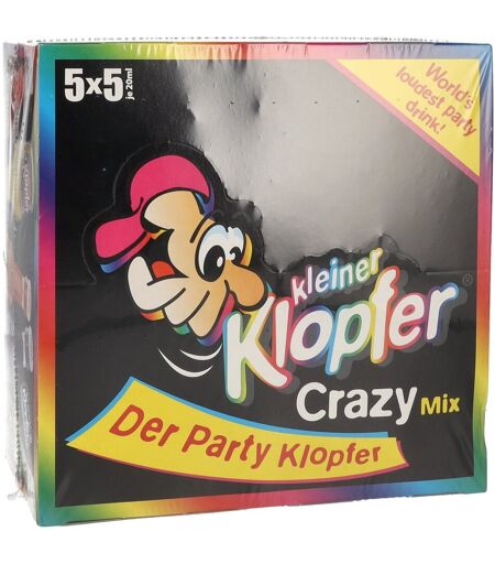 Mit dem Kleiner Klopfer Crazy Mix wird jede Feier zur geschmacklichen Abenteuerreise! Diese bunt gemischte Shotbox vereint fünf spannende und teils ausgefallene Sorten, die von fruchtig bis spritzig reichen und dabei immer wieder für neue Überraschungen sorgen. Wie alle Produkte der Marke steht auch dieser Mix für Spaß, Lebensfreude und unkomplizierten Partygenuss – perfekt für Geburtstage, Festivals, WG-Partys oder gesellige Runden mit Freunden. Im handlichen Mini-Format à 0,02 l pro Flasche lässt sich jeder Shot direkt und stilecht nach dem bekannten Klopfer-Ritual genießen: Fläschchen mit Schwung auf den Tisch klopfen, Deckel auf die Nase setzen, gemeinsam anstoßen – und den Shot ganz ohne Hände leeren. Das sorgt garantiert für Lacher und lockere Stimmung. Der Crazy Mix enthält fünf unterschiedliche Likörsorten mit einem Durchschnittsalkoholgehalt: Inhalt: - 5x Jostabeere Likör 15 Vol.% - 5x Blueberry Likör 15 Vol. % - 5x Blutorange Likör 16 Vol.% - 5x Top Speed Likör 15 Vol.% - 5x Green Apple Likör 15 Vol.% Diese außergewöhnliche Zusammenstellung macht den Crazy Mix zum perfekten Begleiter für alle, die gerne neue Geschmackserlebnisse entdecken und Partystimmung lieben. Farbe: Vielfältig – von leuchtendem Orange bis frischem Grün. Nase: Fruchtig, süß, teils herb – je nach Sorte individuell. Geschmack: Abwechslungsreich – von beerig über zitrusfrisch bis energiegeladen. Abgang: Kurz, erfrischend und spaßig – ideal für den schnellen Shotgenuss. Gekühlt servieren und nach dem klassischen Kleiner-Klopfer-Ritual genießen – besonders geeignet für Trinkspiele, als Eisbrecher in neuen Runden oder als kreatives Mitbringsel zur nächsten Party. Mit dem Crazy Mix wird es garantiert nie langweilig. Also: Klopfen, lachen, genießen – und gemeinsam verrückte Momente feiern. ...