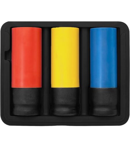 SWSTAHL Radmutterneinsätze, 1/2', 17, 19, 21 mm, 3-teilig Eigenschaften: Schlagfest Voll kunststoffgekapselt Extra dünnwandig Optimale Kraftübertragung Felgen und Schrauben werden nicht mehr verkratzt Aus hochfestem Chrom- Molybdän Material:Chrom-Molybdänstahl Schlüsselweite:21 Qualität:Premium Schraubenkopf-/Mutternprofil:Außensechskant Länge [mm]:85 mm Anzahl Werkzeuge:3 Schlüsselweite:17 Verpackung:Kunststoffkassette Schlüsselweite 19 , OE-Nummer:KS TOOLS:515.0630KS TOOLS:515.1005HAZET:903SPC/3BGS:7300KS TOOLS:515.1070 ...