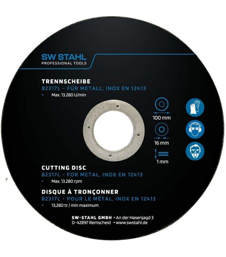 SWSTAHL Trennscheibe für Metall, 100 x 1,0 x 16 mm, 10 Stück geeignet für die Bearbeitung von Metallen. Kaltgepresst Stahl und Edelstahl DSA Zulassung Max. 13.280 U/min Passend zu Druckluft-Trennschleifer S3268. Höhe [mm]:12,5 mm Gewicht [kg]:0,2525 kg Breite [mm]:100 mm Länge [mm]:100 mm , OE-Nummer:HAZET:9033P-08/5KS TOOLS:337.2010HAZET:9033P-08/25 ...