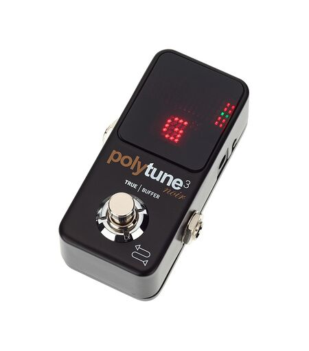 tc electronic Polytune 3 Noir; Effektpedal für E-Gitarre; Polyphonic Tuner/Buffer, Stimmgerät in Effektpedalgröße, Bonafide-Bufferschaltung erhält Ihren Ton durch lange Kabelwege und mehreren Effekten, polyphones Tuning - Stimme alle Saiten gleichzeitig, schneller chromatischer Tuner bietet 0,5 Cent Genauigkeit, ultra-präziser Strobe-Tuner bietet ± 0.02 Cent Genauigkeit, "always on" Modus bietet Tuner erkennung auch wenn der Polytune 3 nicht gemutet ist, automatische Helligkeit anpassende, Super-Helle 109-LED-Anzeige, wechselt automatisch zwischen polyphone und monophone Abstimmung; LED: Effect On; Fußschalter: On/Off/Mute; Anschlüsse: Input (6,3 mm Klinke), Output (6,3 mm Klinke), Netzadapter Anschluss (Hohlstecker Buchse 5,5 x 2,1 mm, Minuspol Innen); Stromaufnahme: 100 mA; Stromversorgung mit einem 9 V DC Netzadapter (nicht im Lieferumfang enthalten); passendes optionales Netzteil: Art. Nr. #409939; kein Batteriebetrieb; True Bypass; Abmessungen (B x T x H): 51 x 45 x 93 mm; Gewicht: 160 g; Farbe: Schwarz. ...