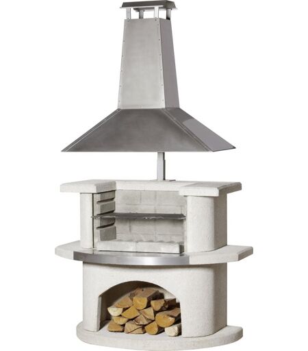 Buschbeck Grillkamin Venedig weiß-Edelstahl 197 x 110 x 65 cm