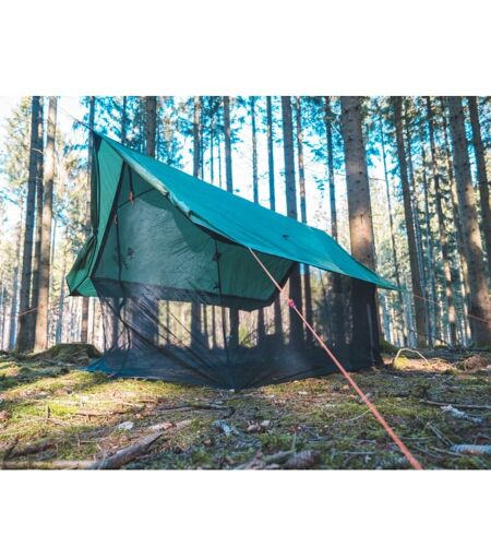 Das Amazonas Moskito Wing Tarp ist bereits mit einem fest angenähten Moskitonetz ausgestattet, das unterhalb des Tarps einen kastenförmigen, insektengeschützten Raum errichtet. Der Boden ist offen und wird mit den mitgelieferten Heringen abgespannt, sodass sich keine Mücken unter dem Rand her schleichen. Das Mückennetz unter dem Amazonas Moskito Wing Tarp ist mit einem großen Reißverschlusseingang versehen, der etwas zur Seite versetzt ist, damit du nicht direkt vor deine Hängematte läufst. An beiden oberen Ecken sind zwei kürzere 2-Wege Reißverschlüsse eingearbeitet, durch die du deine Hängematte führen kannst, um sie außerhalb des Tarps am Baum zu befestigen. Du kannst das Amazonas Moskito Wing Tarp aber natürlich auch ohne Hängematte nutzen. Das Tarp hat nicht nur an den Ecken, sondern auch in der Fläche Abspannpunkte erhalten, damit du verhindern kannst, dass es nach innen zu stark durchhängt. Mit 3000 mm Wassersäule hält das PU-beschichtete Material die Nässe zuverlässig draußen. Das Moskitonetz besitzt an den Seiten mehrere Schlaufen in unterschiedlicher Höhe, sodass du es je nach Abstand zum Boden immer mit der richtigen Spannung fixieren kannst. Beim Amazonas Moskito Wing Tarp sind hierfür auch schon 4 Y-Profil Heringe sowie 4 einfache Zeltnägel dabei, damit du den Grundaufbau von Tarp und Moskitonetz gleich vornehmen kannst. Auch die passenden Abspannleinen sowie Verstellkarabiner sind schon enthalten. Mit einem Gewicht von 1,7 kg wirkt das Amazonas Moskito Wing Tarp zunächst nicht gerade ultraleicht. Rechnet man jedoch die einzelnen Gewichte eines Hängemattentarps und dazu passendem Moskitonetz zusammen, ist diese Kombination auch nicht leichter und muss zudem in mehreren Schritten statt zusammen aufgebaut werden. Das Amazonas Moskito Wing Tarp bringt zu guter Letzt auch einen eigenen Kompressionspacksack mit, dessen Boden aus einem luftigen Mesh Gitter besteht. So kann auch ein noch nasses Tarp unterwegs ein wenig trocknen. Alles in allem ist das Amazonas Moskito Wing Tarp ein rundum geschlossener Schutz vor Nässe und Insekten, der sich in einem Rusch aufbauen lässt und nicht nur mit der Hängematte, sondern auch als minimalistisches Zelt oder entspannter Aufenthaltsort im eigenen Garten einsetzen lässt. ...