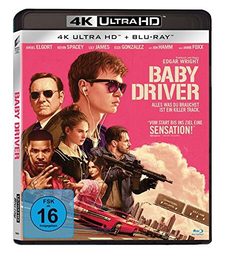 AspectRatio : 2.39 : 1, AudienceRating : Freigegeben ab 16 Jahren, Binding : Blu-ray, Label : Sony Pictures Home Entertainment, Publisher : Sony Pictures Home Entertainment, NumberOfDiscs : 2, NumberOfItems : 2, Format : 4K, medium : Blu-ray, releaseDate : 2017-12-04, runningTime : 113 minutes, theatricalReleaseDate : 2017-01-01, actors : Ansel Elgort, Lily James, Kevin Spacey, Jon Hamm, Jamie Foxx, directors : Edgar Wright ...