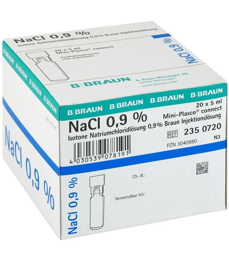 Anwendungsgebiet von Kochsalzlösung 0,9% Miniplasco connectKochsalzlösung 0,9% Miniplasco connect ist eine physiologische Kochsalzlösung zur Infusionstherapie.Wirkungsweise von Kochsalzlösung 0,9% Miniplasco connectKochsalzlösung 0,9% Miniplasco connect ist eine physiologische 0,9 % Natriumchloridlösung zum Volumenersatz. Dabei zeichnet sich Kochsalzlösung 0,9% Miniplasco connect nicht nur durch die einfache Handhabung sondern zugleich durch hohe Sicherheit aus. Diese wird vor Allem dadurch möglich, dass Kochsalzlösung 0,9% Miniplasco connect ohne Nadeln verwendet werden kann. Durch eine unbelüftete Entnahme wird zudem eine Kontamination mit Luft ausgeschlossen. Auch beim Öffnen von Kochsalzlösung 0,9% Miniplasco connect entstehen keine Verletzungen und eine Verunreinigung mit Glas ist ebenso ausgeschlossen. Somit ist Kochsalzlösung 0,9% Miniplasco connect der sichere und einfach zu handhabende Volumenersatz.Wirkstoffe / Inhaltsstoffe / Zutaten5ml Lösung 1 Amp. von Kochsalzlösung 0,9% Miniplasco connect enthält: Wirkstoffe Natriumchlorid 0.045g entspricht Natrium-Ion 0.77mmol entspricht Chlorid 0.77mmol sonstige Bestandteile: Wasser für Injektionszwecke GegenanzeigenBei bekannter Überempfindlichkeit gegenüber einem der oben genannten Inhaltsstoffe sollte dieses Produkt nicht angewendet werden. DosierungAnwendungsempfehlung von Kochsalzlösung 0,9% Miniplasco connect: Sie können Kochsalzlösung 0,9% Miniplasco connect zum Volumenersatz verwenden. Beachten Sie dazu die beiliegenden Anwendungshinweise. Zu Risiken und Nebenwirkungen lesen Sie die Packungsbeilage und fragen Sie Ihre Ärztin, Ihren Arzt oder in Ihrer Apotheke. Kochsalzlösung 0,9% Miniplasco connect sind apothekenpflichtig und können in Ihrer Versandapotheke www.juvalis.de erworben werden. ...
