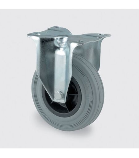 Felge: Polypropylen Lauffläche: grauer Gummi, hinterlässt keine Spuren Aufnahme: durch das Mittelloch und die Platte Lager: Rollenlager ohne Schutz gegen Faseraufwicklung wärmebeständig bei Temperaturen von -20 °C bis +60 °C Eigenschaften: Raddurchmesser (mm): 200, Radbreite (mm): 50, Radbauhöhe (mm): 240, Tragfähigkeit (kg): 205, Plattenmaße (mm): 137 x 115, Lochabstand A (mm): 105, Lochabstand B (mm): 80 - 75, Bohrungsdurchmesser (mm): 11, Halterungstyp: durch die Platte, Radtyp: fest, Lagertyp: Rollenlager, Laufflächentyp: grauer Gummi ...