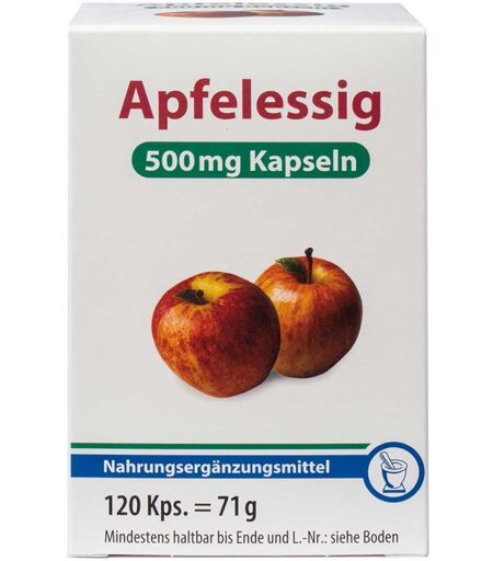 Anwendungsgebiet von Apfelessig 500 KapselnApfelessig 500 Kapseln sind ein Nahrungsergänzungsmittel mit Apfelweinessig und Vitamin B6. Vitamin B6 trägt zu einem normalen Energiestoffwechsel, Eiweiß- und Glycogenstoffwechsel bei. Zusätzlich trägt Vitamin B6 zur Regulierung der Hormontätigkeit bei. Apfelessig 500mg Kapseln machen den unkomplizierten und geschmacksneutralen Verzehr von Apfelessig möglich.Wirkstoffe / Inhaltsstoffe / ZutatenApfelessig 500 Kapseln enthält: Apfelweinessig-Pulver, Gelatine (Rind), Trennmittel Magnesiumsalze der Speisefettsäuren, Vitamin B6, Farbstoff Calciumcarbonat. Pro 2 Kapseln: Apfelweinessig-Pulver 1000 mg Vitamin B6 3,5 mg (250 %)* *Referenzwerte gemäß LMIVGegenanzeigenBei bekannter Überempfindlichkeit gegenüber einem der oben genannten Inhaltsstoffe sollte dieses Produkt nicht angewendet werden. DosierungVerzehrempfehlung der Apfelessig 500 Kapseln: 1-2 Kapseln täglich unzerkaut mit etwas Flüssigkeit zu den Mahlzeiten verzehren.HinweiseNahrungsergänzungsmittel stellen keinen Ersatz für abwechslungsreiche Ernährung dar. Eine ausgewogene Ernährung und gesunde Lebensweise sind wichtig. Apfelessig 500 Kapseln sollten außerhalb der Reichweite von Kindern aufbewahrt werden. Apfelessig 500 Kapseln können in Ihrer Versandapotheke www.juvalis.de erworben werden. ...