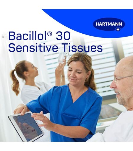 HARTMANN Flächendesinfektion Sicherheit und Schutz vor Keimen Die Flächendesinfektion hilft, die Übertragung von Krankheiten zu verhindern (Infektionsprophylaxe). Denn Krankheitserreger können monatelang auf Flächen überleben und dann über Staub und Hände weiter verbreitet werden. An Flächen, die von vielen Menschen benutzt werden, finden sich oft besonders viele Mikroorganismen: Türgriffe, Handläufe und Arbeitsflächen, aber auch Toiletten und Bäder besitzen oft eine erhöhte Keimbelastung. VORGETRÄNKTE TÜCHER: - Bacillol® 30 Tissues Materialschonende Schnell-Desinfektionstücher zur Desinfektion sensibler Oberflächen im handlichen Flowpack. mit Bacillol 30 Foam getränkte gebrauchsfertige Desinfektionstücher schnell wirksam aldehyd-, farbstoff- und parfümfrei besonders materialschonend, auch geeignet für empfindliche Kunststoffmaterialien wie: Makrolon®, Plexiglas® und Polysulfon sichere und einfache Entnahme einzelner Tissues aus wiederverschließbarer Flowpack-Verpackung dank praktischem Tuchfaltsystem hochwertiges, reißfestes Vlies Anwendung: Materialschonende Schnell-Desinfektionstücher zur Desinfektion sensibler Oberflächen im handlichen Flowpack. Flächen-Desinfektionsmittel vorsichtig verwenden. Vor Gebrauch stets Etikett und Produktinformation lesen. ...