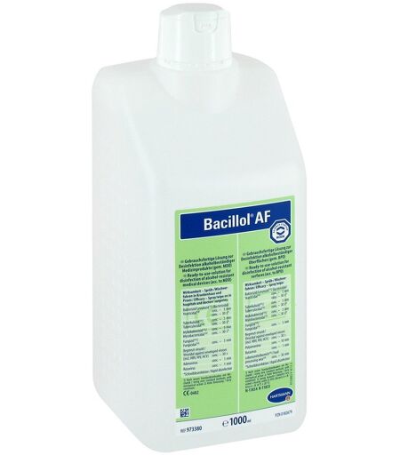 Krankheitserreger können monatelang auf Flächen überleben und dann über Staub und Hände weiter verbreitet werden. An Flächen, die von vielen Menschen benutzt werden (Türgriffe, Handläufe und Arbeitsflächen), finden sich oft besonders viele Mikroorganismen. Außerdem besitzen Toiletten und Bäder oft eine erhöhte Keimbelastung.Wirkungsweise von Bacillol Af LösungBacillol Af Lösung ist ein gebrauchsfertiges Schnell-Desinfektionsmittel mit umfassender Wirksamkeit für alkoholbeständige Flächen und Medizinprodukte. Für Bereiche, in denen eine schnelle Einwirk- und Abtrocknungszeit und eine rückstandsfreie Auftrocknung gefragt ist.