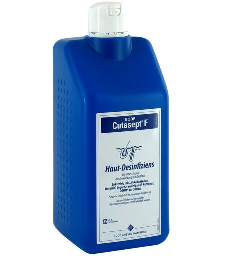 Anwendungsgebiet von Cutasept F LösungCutasept F Lösung ist ein farbloses Hautantiseptikum auf Propylalkoholbasis. Cutasept F Lösung wird vor Punktionen, kleinen medizinischen Eingriffen, Katheterisierungen, bei Unfall- und Bagatellverletzungen, im OP-Bereich zur prä- und postoperativen Hautantiseptik sowie zur chirurgischen und hygienischen Händedesinfektion angewandt.