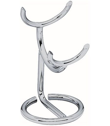 Glänzend verchromter Metallständer zur schonenden und praktischen Aufbewahrung eines Rasierpinsels, sehr stabil. Durch die schräge Aufbewahrung kommt der Pinsel optimal zur Geltung und bietet einen echten Blickfang im Badezimmer.Verlängert die Lebensdauer des Rasierpinsels enorm, weil der Pinsel auf dem Ständer ideal trocknen kann.Für Pinsel in den Größen M und L geeignet. ...